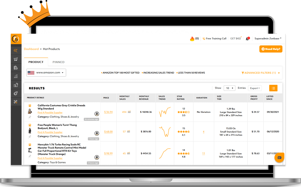 A. Getting started is easy! Simply sign up for a Zonbase account, and you'll gain access to the Hot Products tool and other powerful features. From there, you can explore trending products, set filters, and make data-driven decisions to boost your Amazon business.