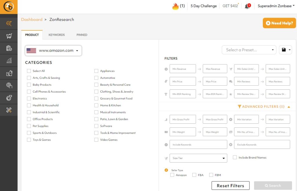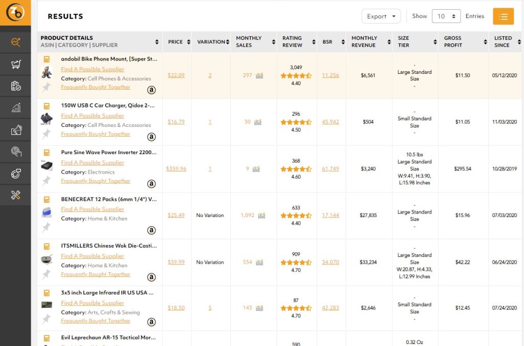 Using a product search tool is the most effective way to find the hottest in-demand items. ZonBase offers an effective set of product research tools to help you find the bestselling products on Amazon. Using the ZonResearch tool, you can find the best products for your store and see important details like monthly sales revenue, sales history, and reviews in a few clicks. Here’s how the tool works: