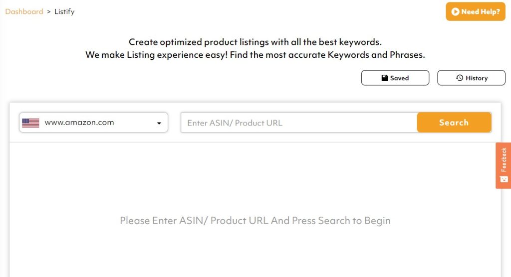 - Enter the ASIN or the URL of the product that you want to extract keywords from, in the search bar.
