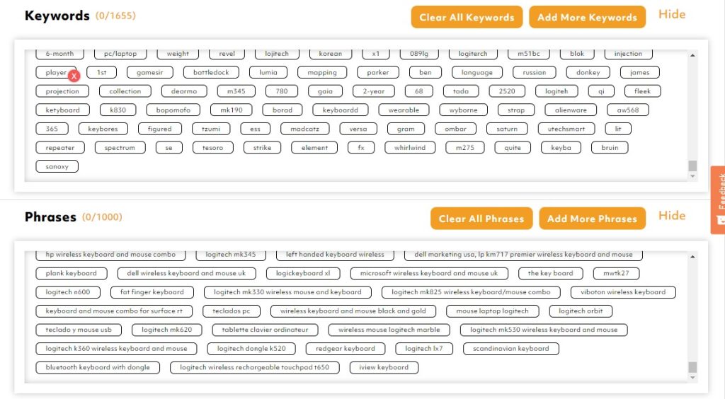 - The tool will generate a list of all related keywords and phrases depending on the product you searched for.