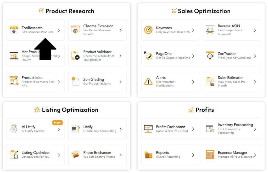- Open the ZonResearch tool from your ZonBase dashboard