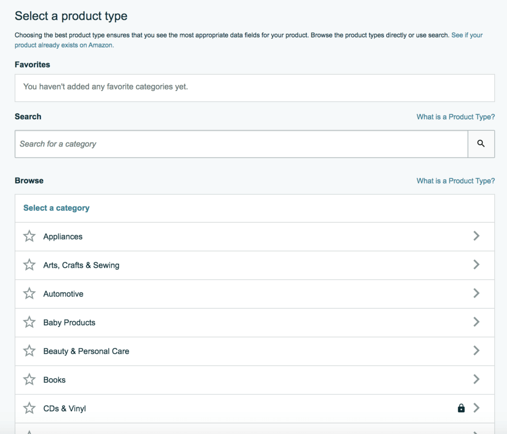 If you intend to sell private label products or sell a product that does not already exist on Amazon, click on “I’m adding a product not sold on Amazon”. Then carefully choose your product category.