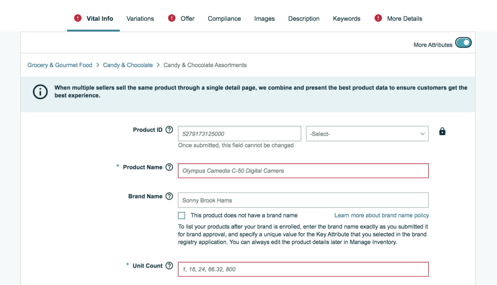 Once this is done, you will be directed to a page that requires you to provide some important product details like title, brand name, UPC code, images, and search terms. Fill out this information carefully. You can apply for a GTIN exemption if you do not have a UPC code.