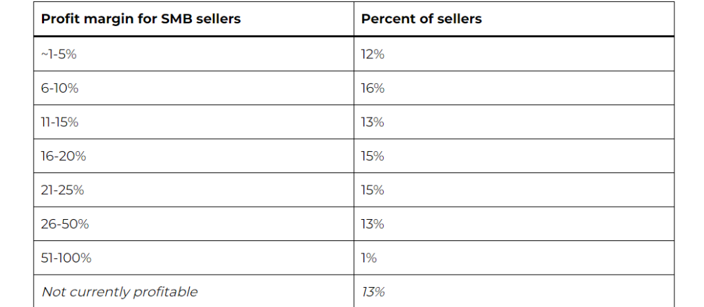 – 57% of Amazon sellers boast profit margins exceeding 10%.