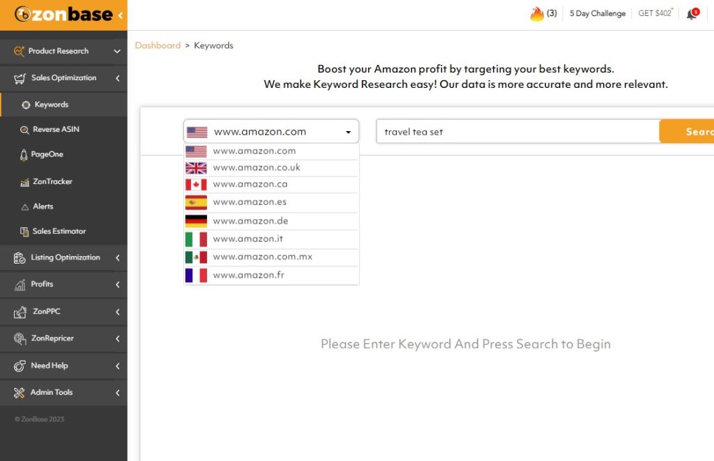 Follow these simple steps to find top-performing keywords using the ZonBase keyword tool:
