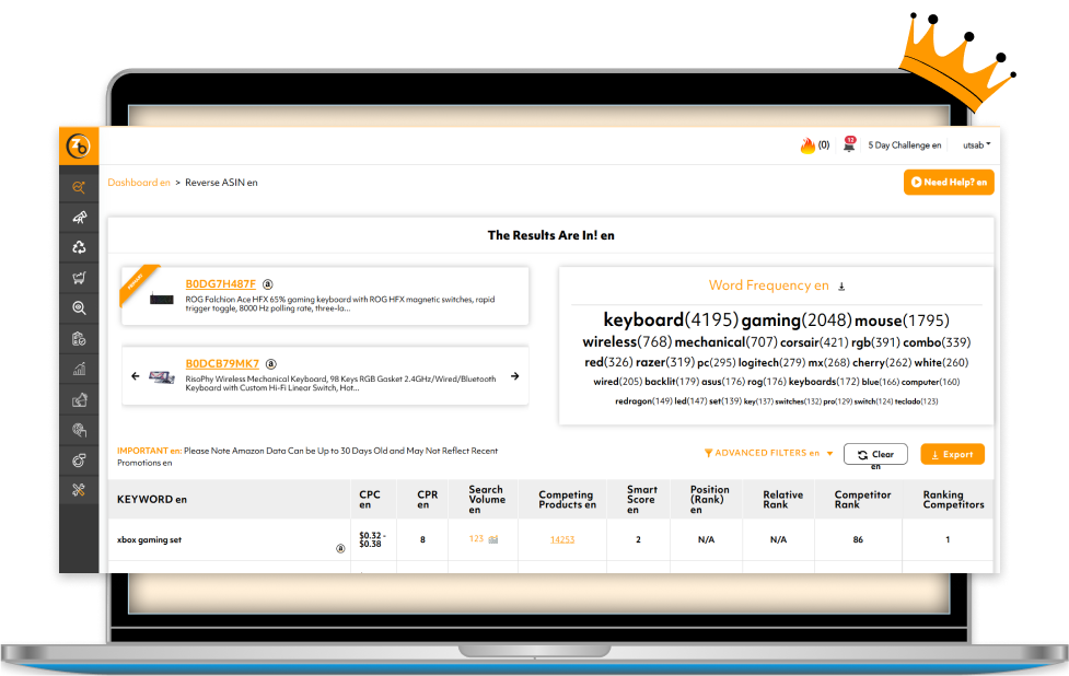 Zonbase’s Reverse ASIN tool is all you need to get further ahead of your Amazon competition. With this tool, you can extract all the keywords in your top competitors’ listings and discover the top keywords they rank for.