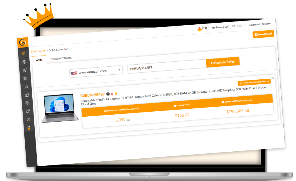 A. The Zonbase Sales Estimator tool gives you an estimate of a product’s average monthly sales.